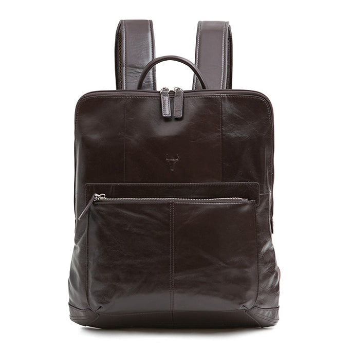 Classic laptop backpacks for men. Genuine cowhide leather casual school bookbags. Vintage square backpacks for weekend, travel, picnic, school, business.