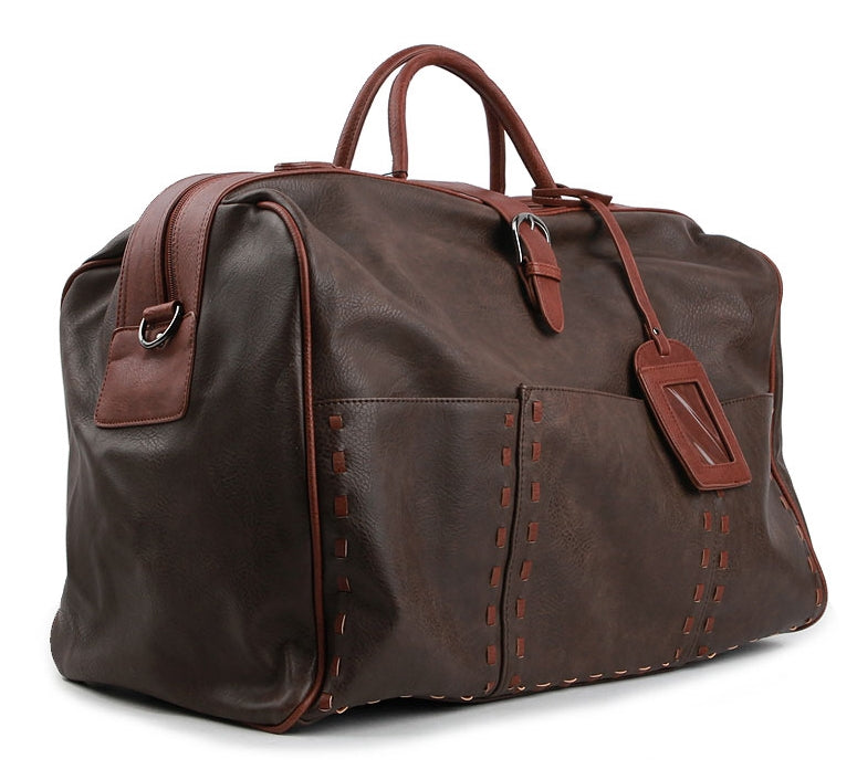 Brown Large Travel Vintage Faux Leather Duffle Gym Bags