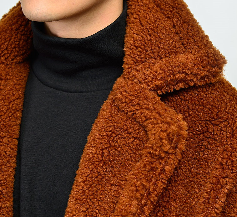 Lightweight and stylish! Shearing winter long coats for men. Oversized loose fit outerwear, Kpop style Korean fashion outfit for party, wedding, dinner, dating.