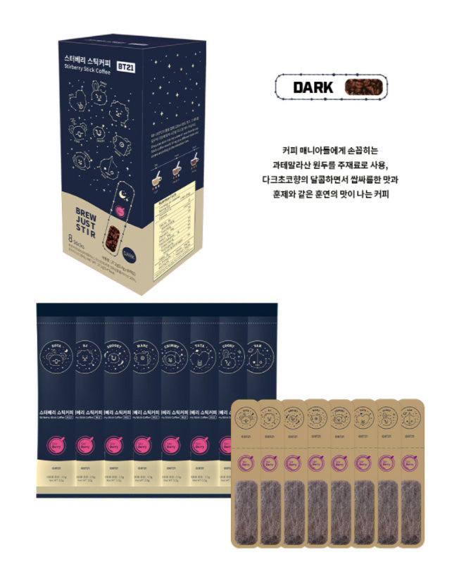 BT21 Stir Berry Stick Coffee Mild Dark Flavor Tea Drink Instant Hand Drip Americano