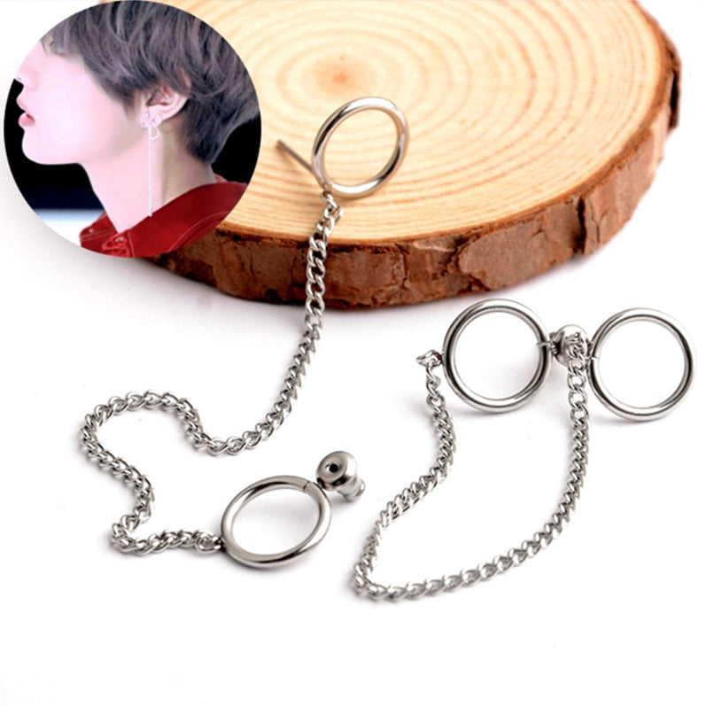 BTS Bangtan Boys idol band member V's earrings. Newest Kpop Style accessories, made of Titanium Steel meterial. Silver color.