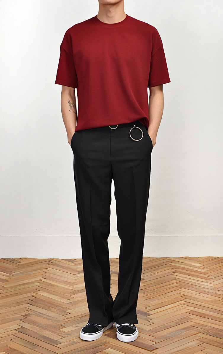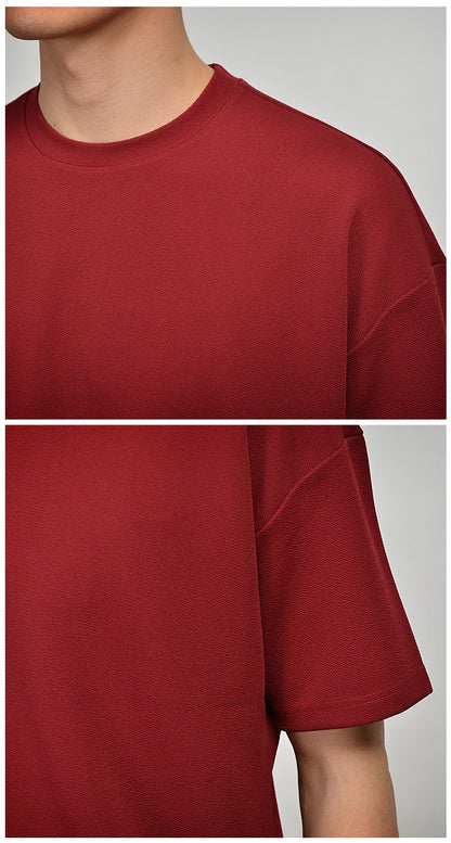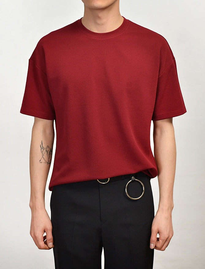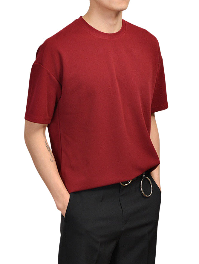 Burgundy Red Short Sleeve Tshirts Mens Loose Fit Tees Solid Plain Tops