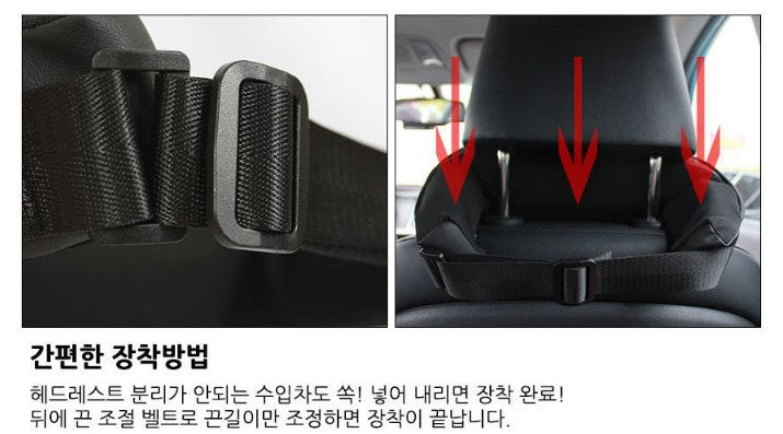 How to use: If you put the imported car that does not separate the headrest into place, put it down and complete the installation! Just adjust the length of the string with the strap adjustment belt on the back.