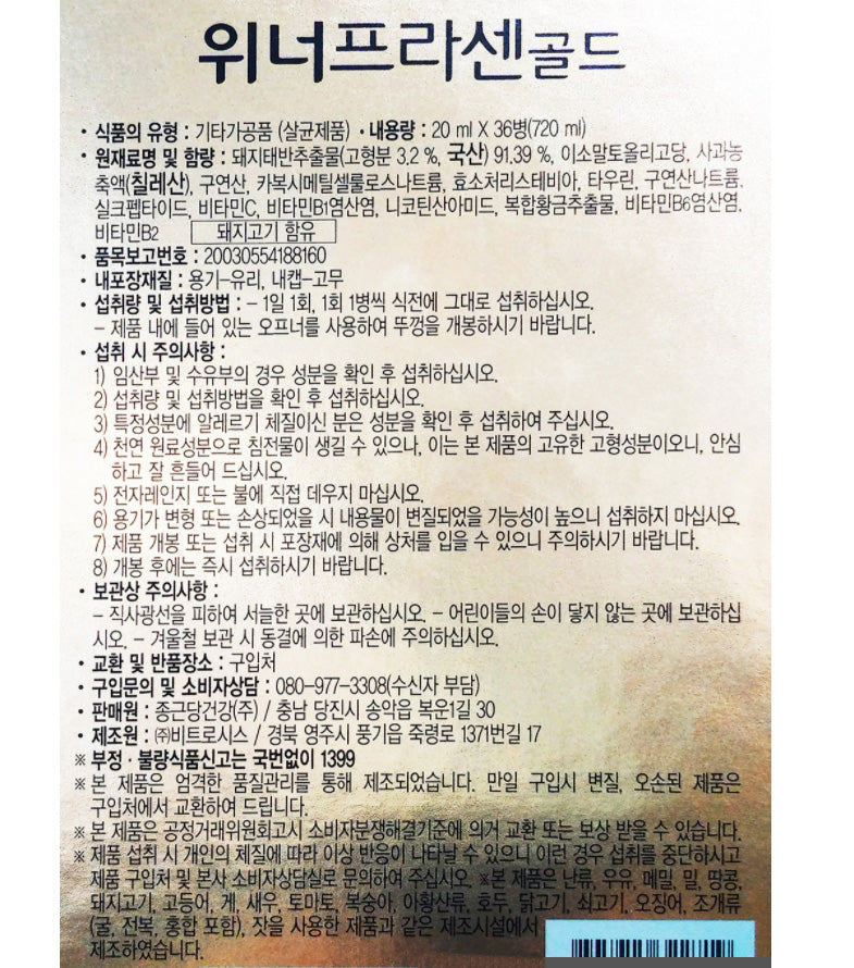Winerplacen Gold is a pork placenta product made using only selected ingredients by applying the spray-dry enzyme extraction method of the Japan Natural Products Research Institute, which obtained the S.P.F (Specific Pathogen Free) mark.