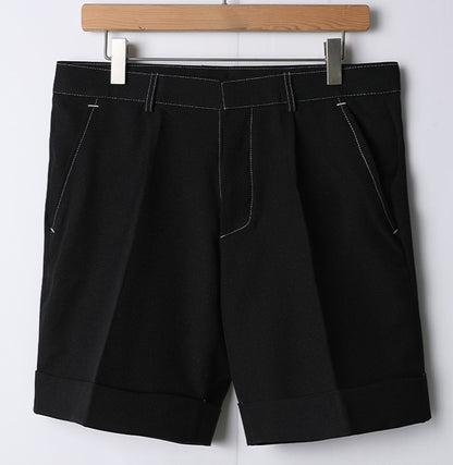 Black Turn-Up Stitch Shorts Korean Mens Fashion Summer Casual