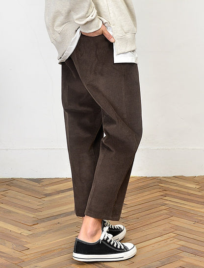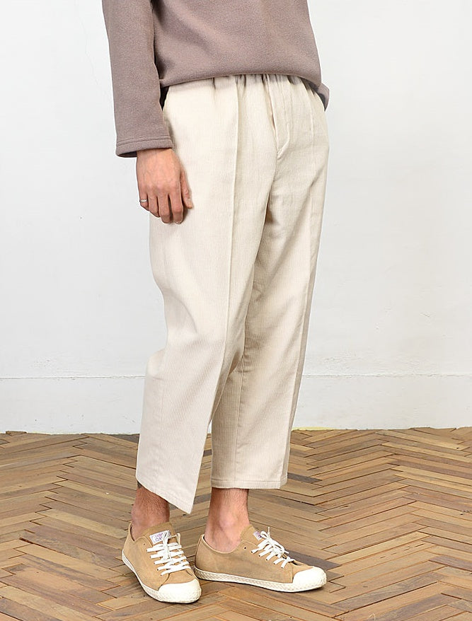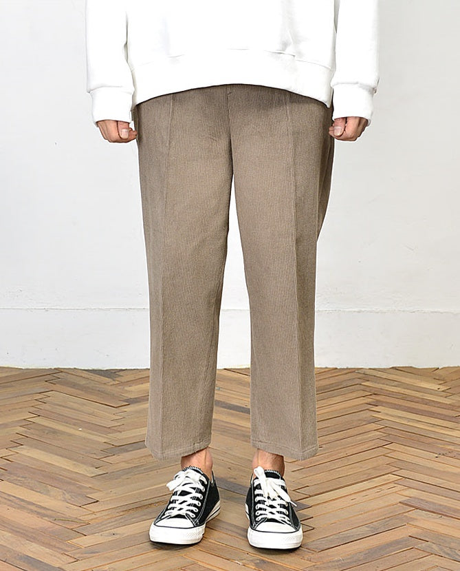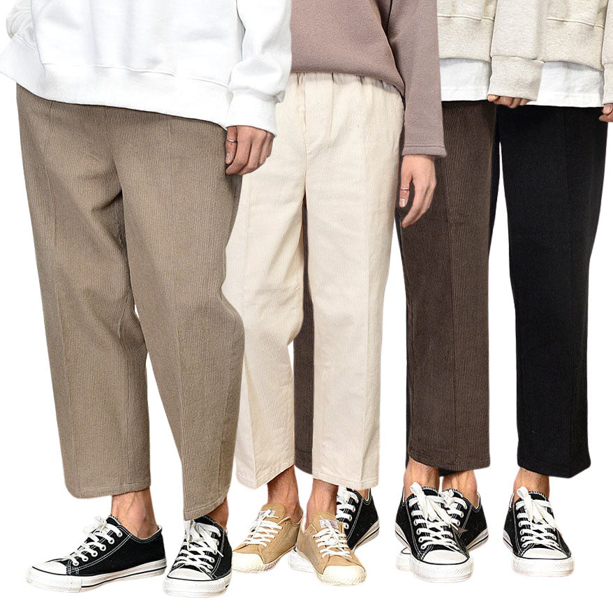 Men's wide fitted classic trousers, formal and casual corduroy pants for men. Korean K-pop fashion cropped pants for dating, party, weekend, picnic, camping. Stylish wide pants for winter season.