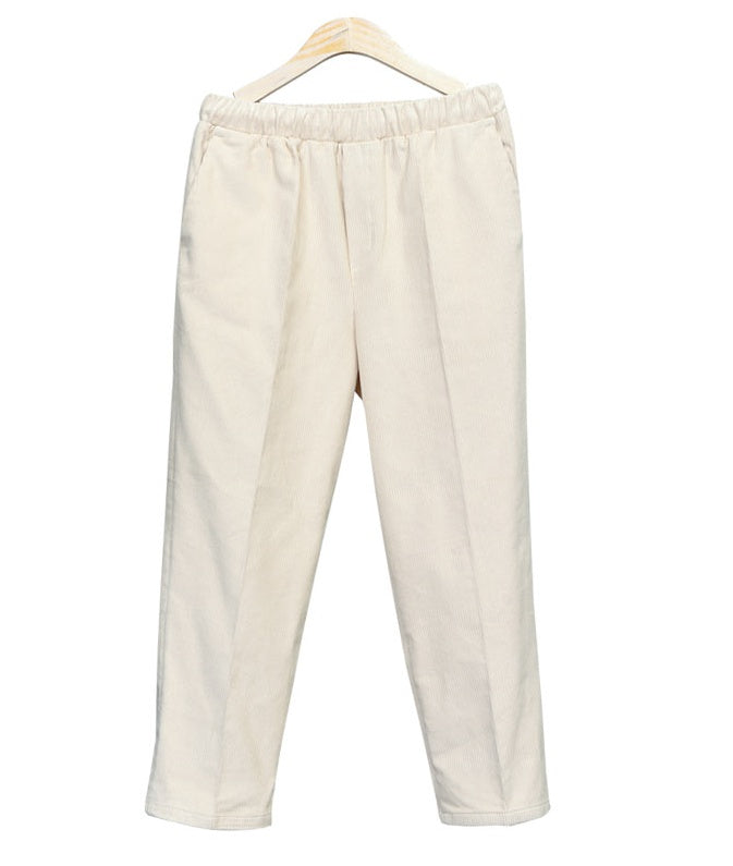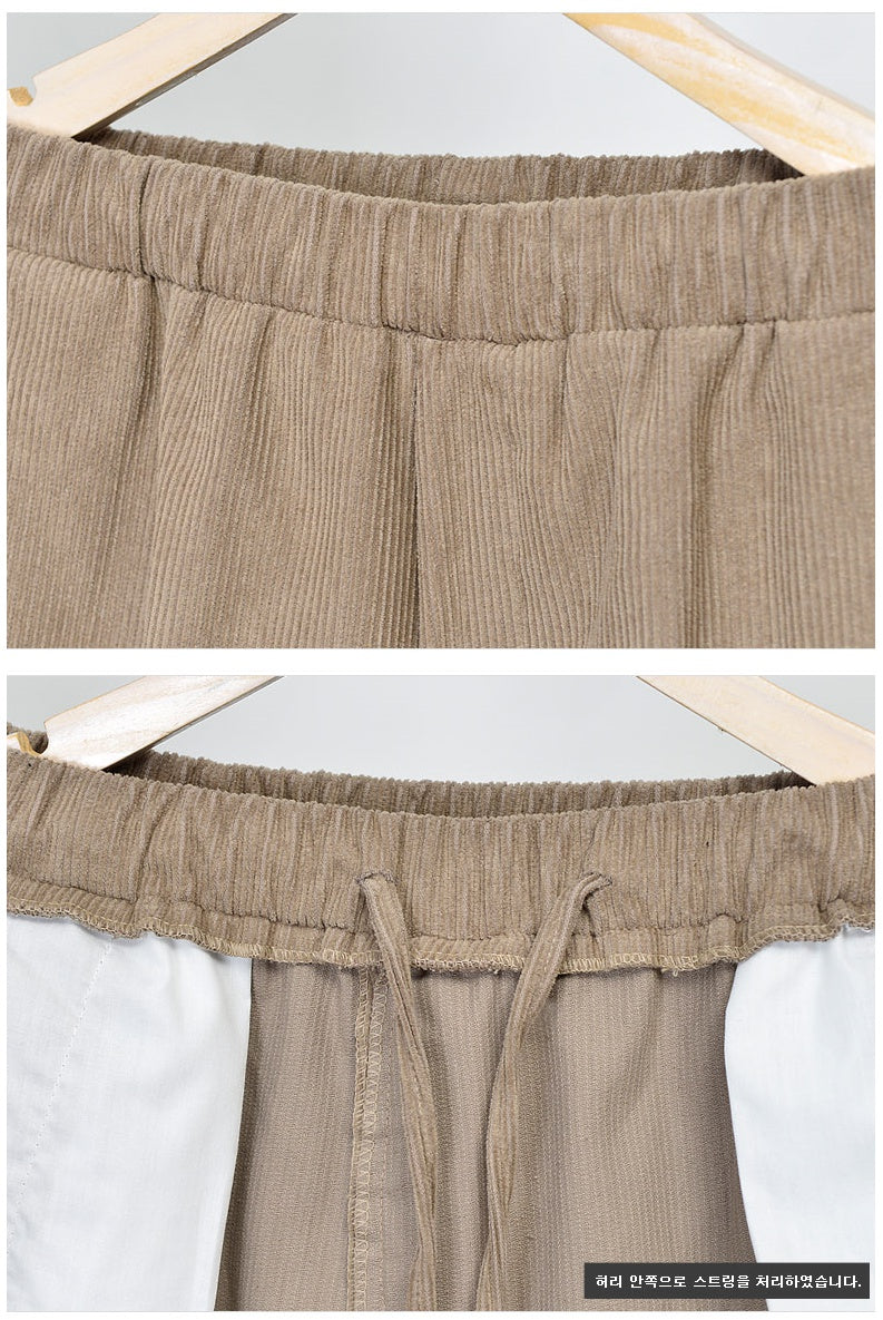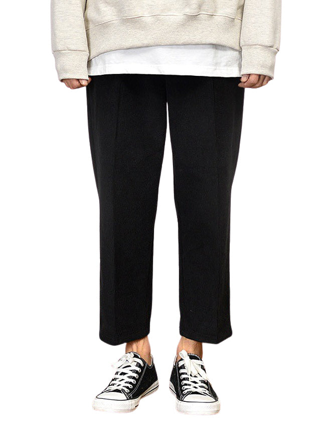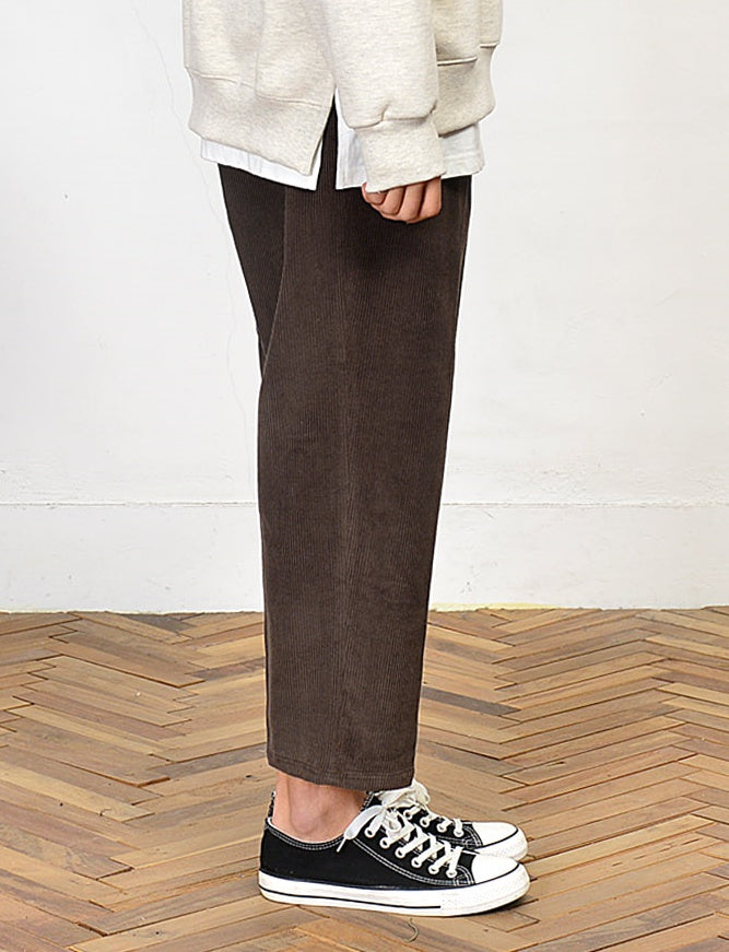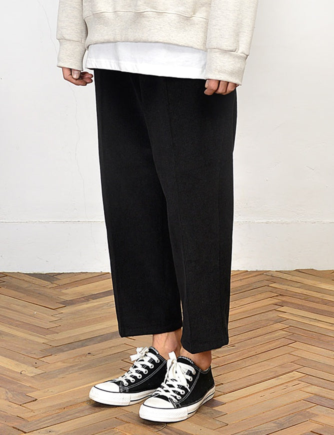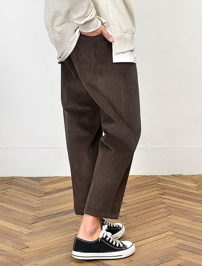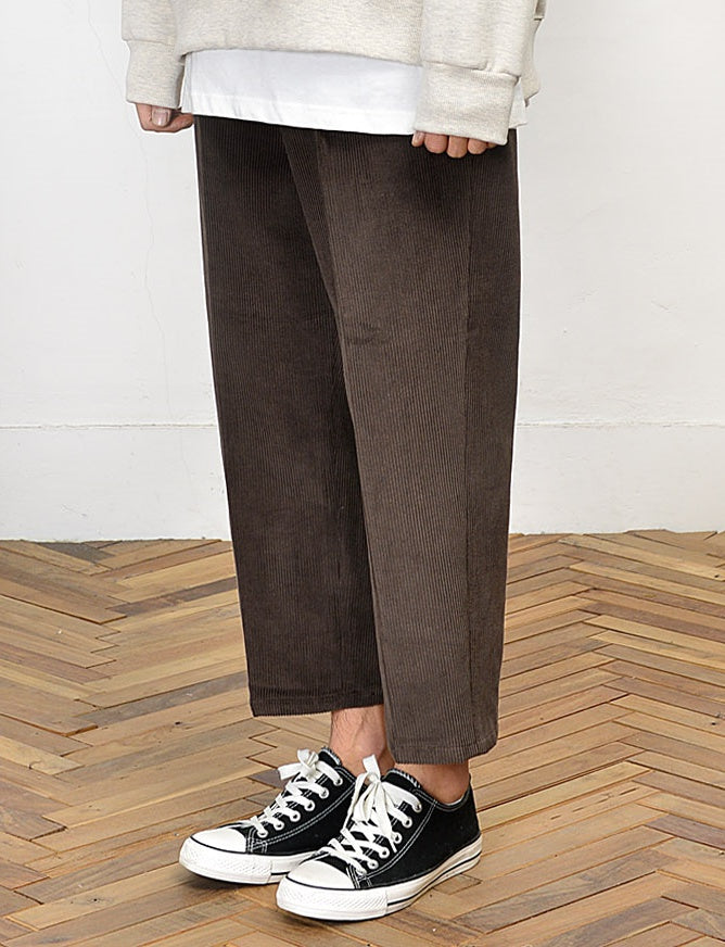 Corduroy Wide Trousers Mens Formal Casual Cropped Pants Korean Guys Kpop Style Waistband