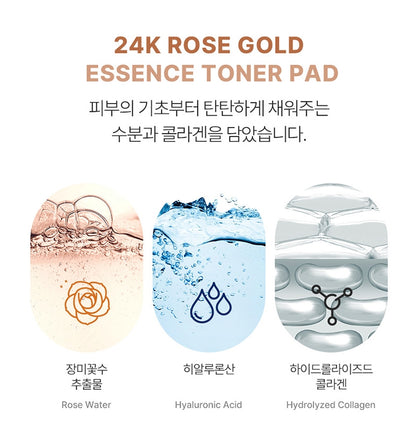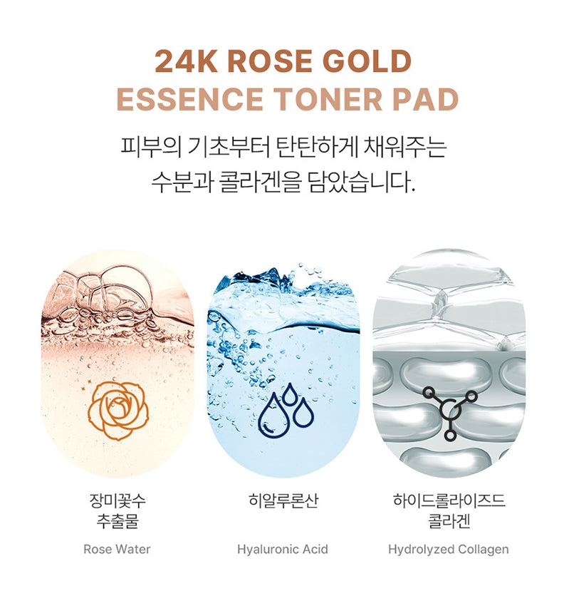 Meet the moist 24k rose gold essence toner that fills your skin from the inside out with a toner pad.