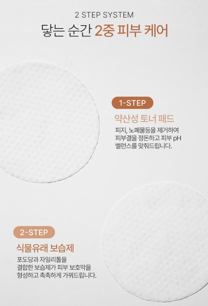 After washing the face, a soft, slightly acidic toner pad balances the skin's pH and moisturizes the skin.