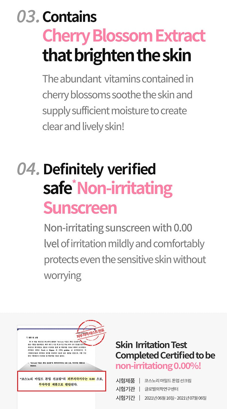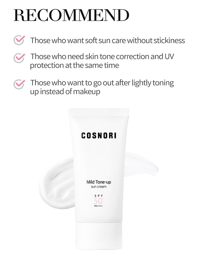 COSNORI Mild Tone-up Sun Cream Sunscreen SPF50+ PA++++ Non-sticky