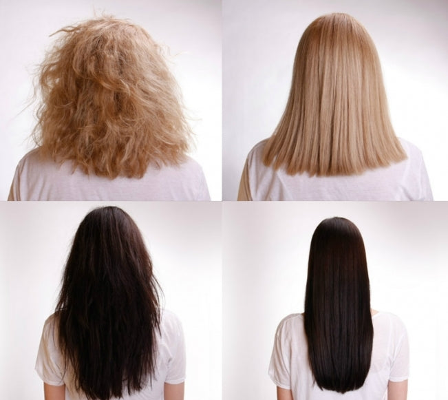 - Low-molecular protein and Quinoa Extract are absorbed onto the cuticular layer of damaged hair.