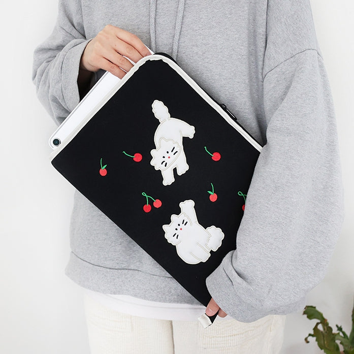 Cute Animal Characters 13" Open Laptop Sleeves Pouches Square Cases Covers Embroidery Skins Purses Handbags Soft Protection