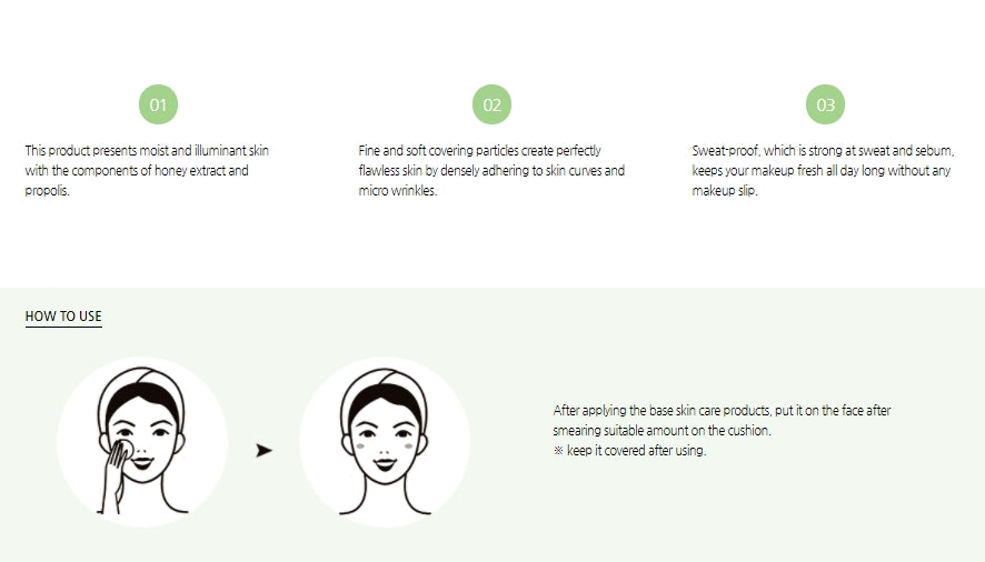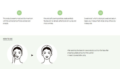 After applying the base skin care products, put it on the face after smearing suitable amount on the cushion.