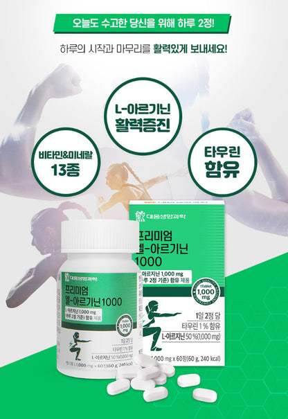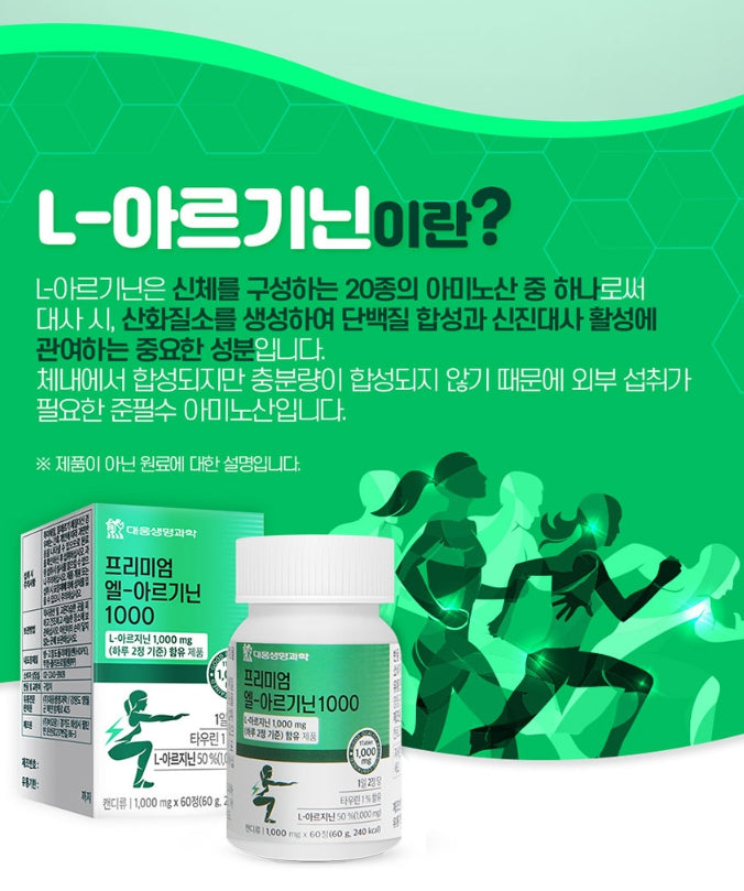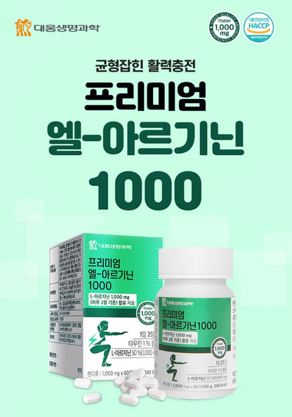 Daewoong Premium L-arginine 1000 60 Tablets Health Supplements Amino Acid Sports Energy Vitality