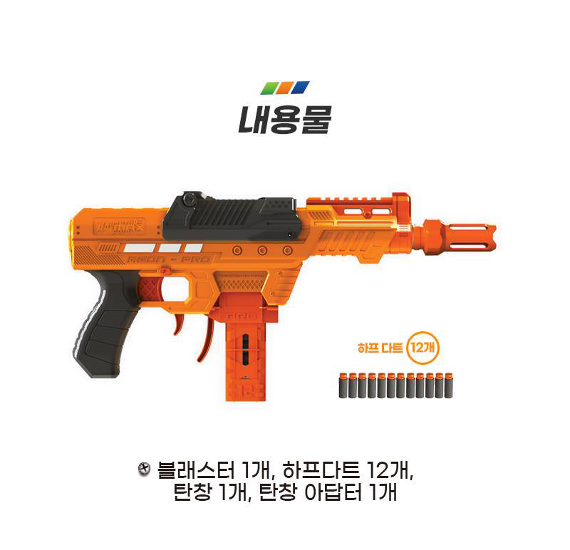 Components: 1 blaster, 12 half darts, 1 ammunition, 1 ammunition adapter.
