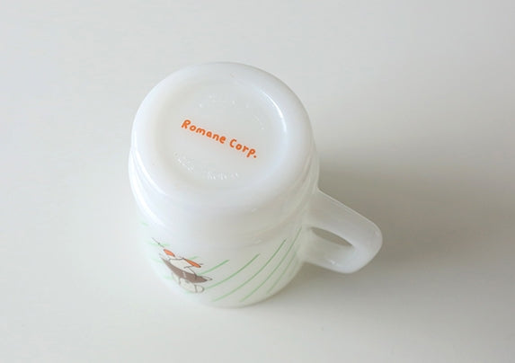 This is a retro-style milk-colored milk glass with romane illustrations.