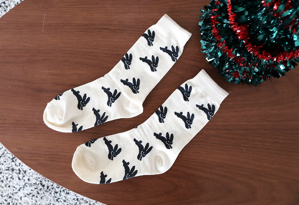 Korean trend socks, made of cotton blend. Fashionable socks for women and men, good for wear in couple. 100% made in Korea, accent look, wear for 4 seasons.