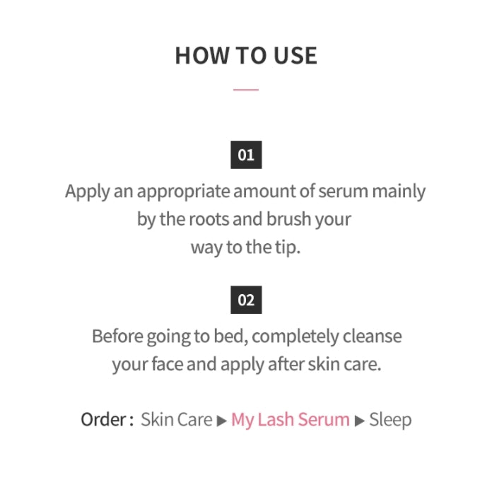 How to use : When you use night skincare products before going to bed, apply it by brushing your eyelashes from the root to the end.