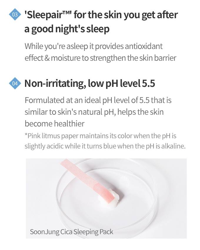 NON-IRRITATING, LOW pH FORMULA (WEAKLY ACIDIC): SoonJung’s formula helps women and men’s skin to maintain the correct, low pH level. Chemicals with an alkaline pH are detrimental to skin’s protective barrier, making it more prone to dryness and other various external factors. Low pH products calm down, rejuvenate (anti-aging effect) and take care of your sensitive skin.