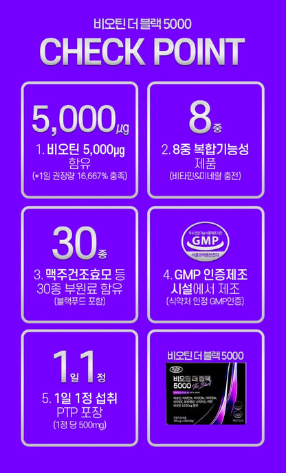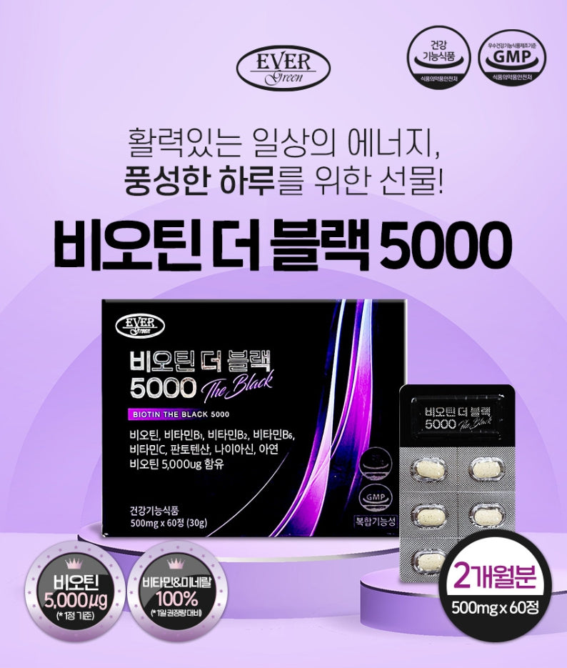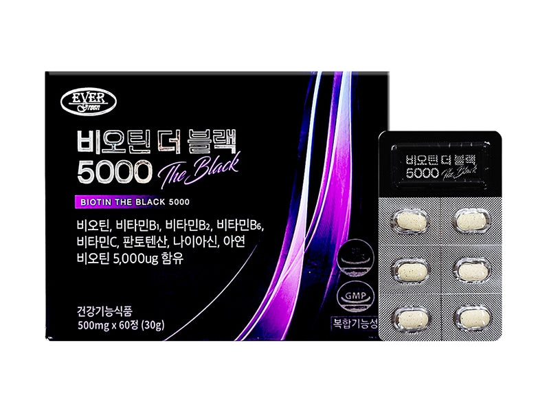 Evergreen Biotin The Black 5000 60 Tablets Health Supplements Energy Vitamins Pantothenic acid Zinc Vitality