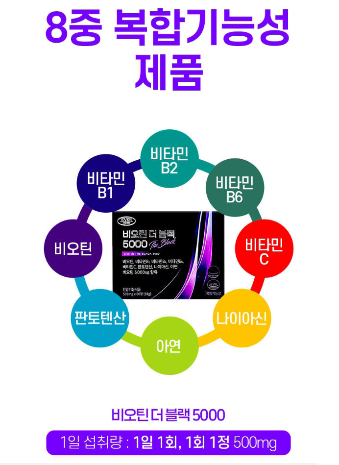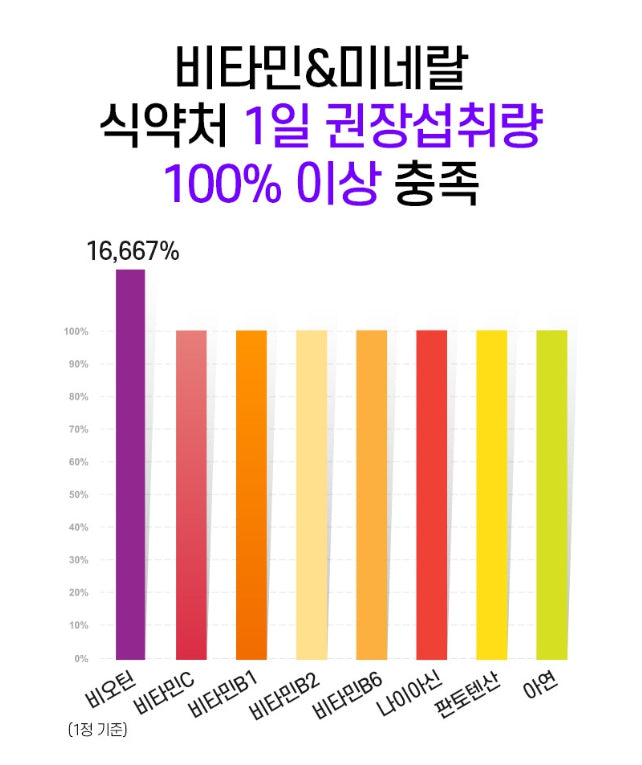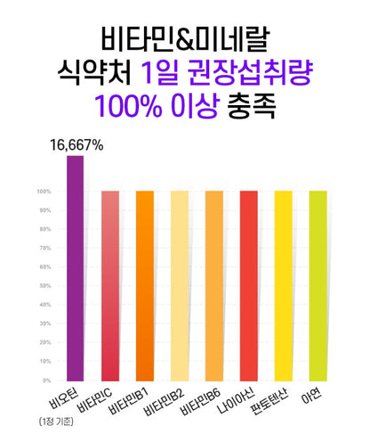 To recharge your energy for the day, 6 types of vitamin B including biotin, vitamin C, and minerals are contained in one tablet. If you take 1 tablet a day, you can meet 100% of the recommended daily intake.