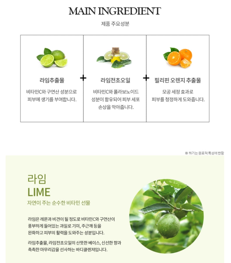 It is a body cleanser that contains lime extract rich in vitamin C and citric acid to help you manage your skin with vitality.