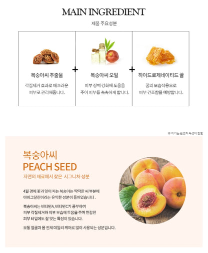 Peach seeds are rich in vitamin A and vitamin C, which helps to exfoliate the skin and moisturize the skin, and is suitable for sensitive skin types. It is an ingredient that is often used as a daily care for the entire face and body.