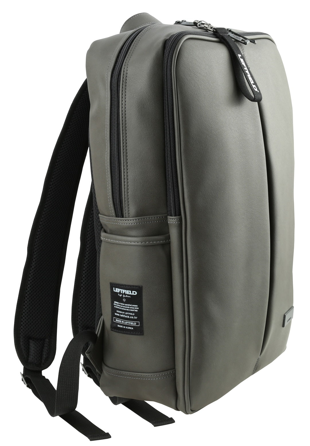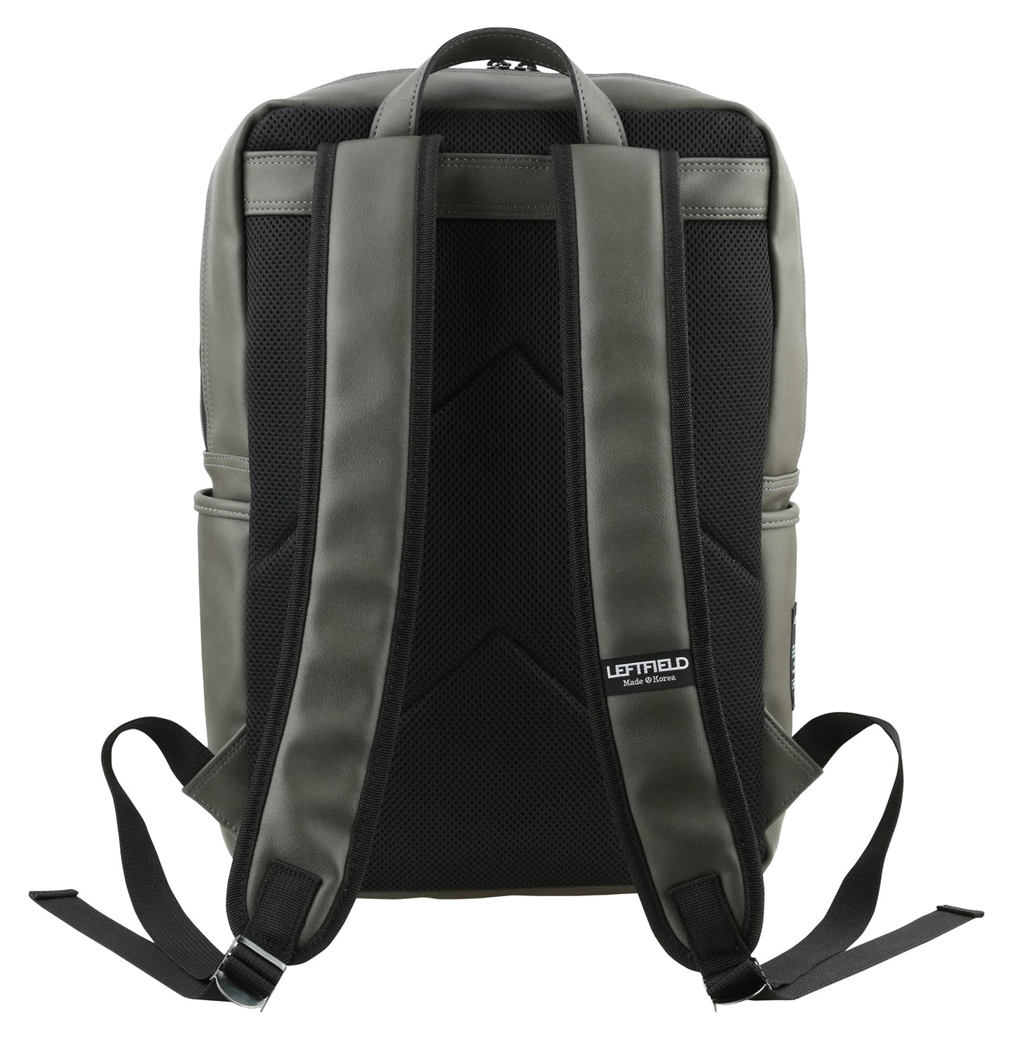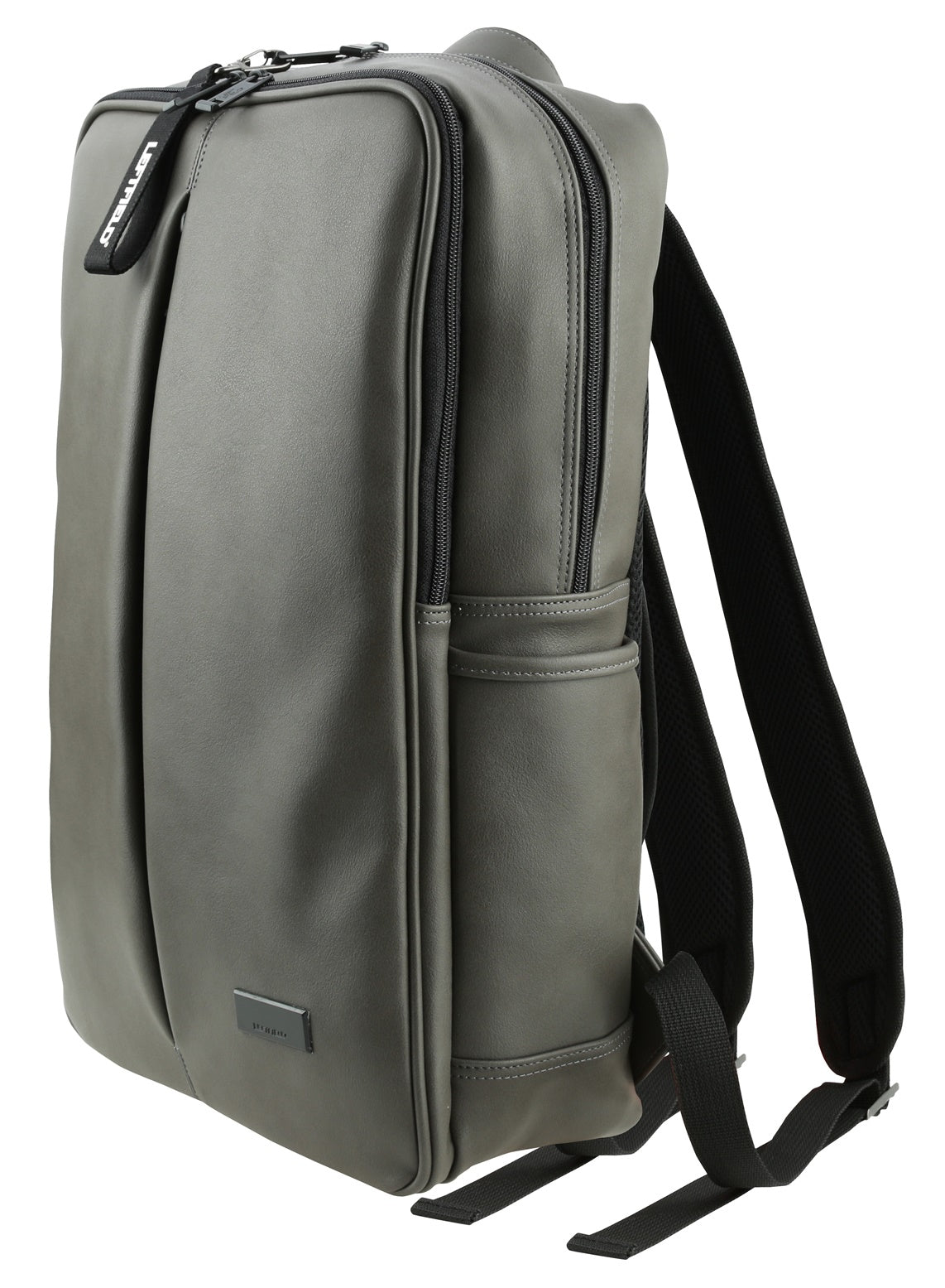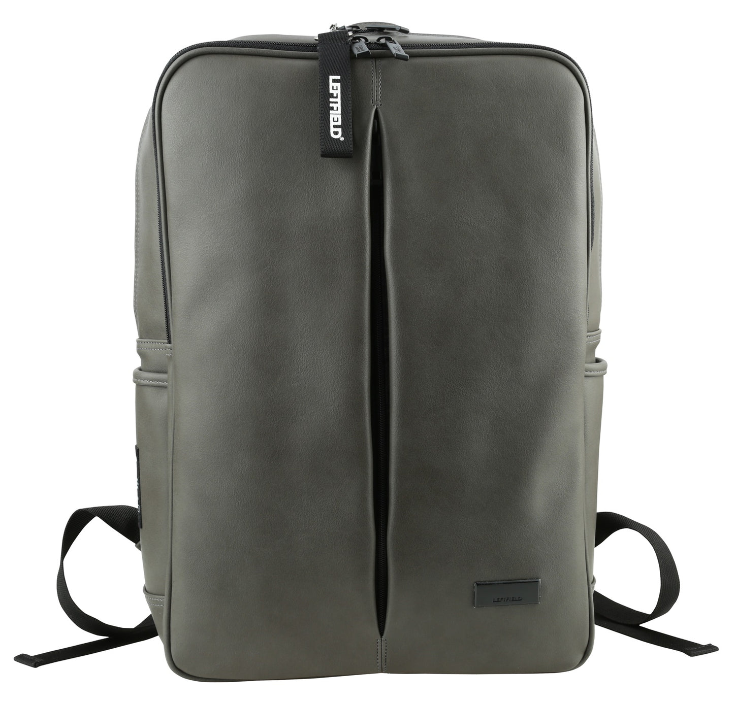 Gray Vertical Line Zipper Faux Leather Backpacks