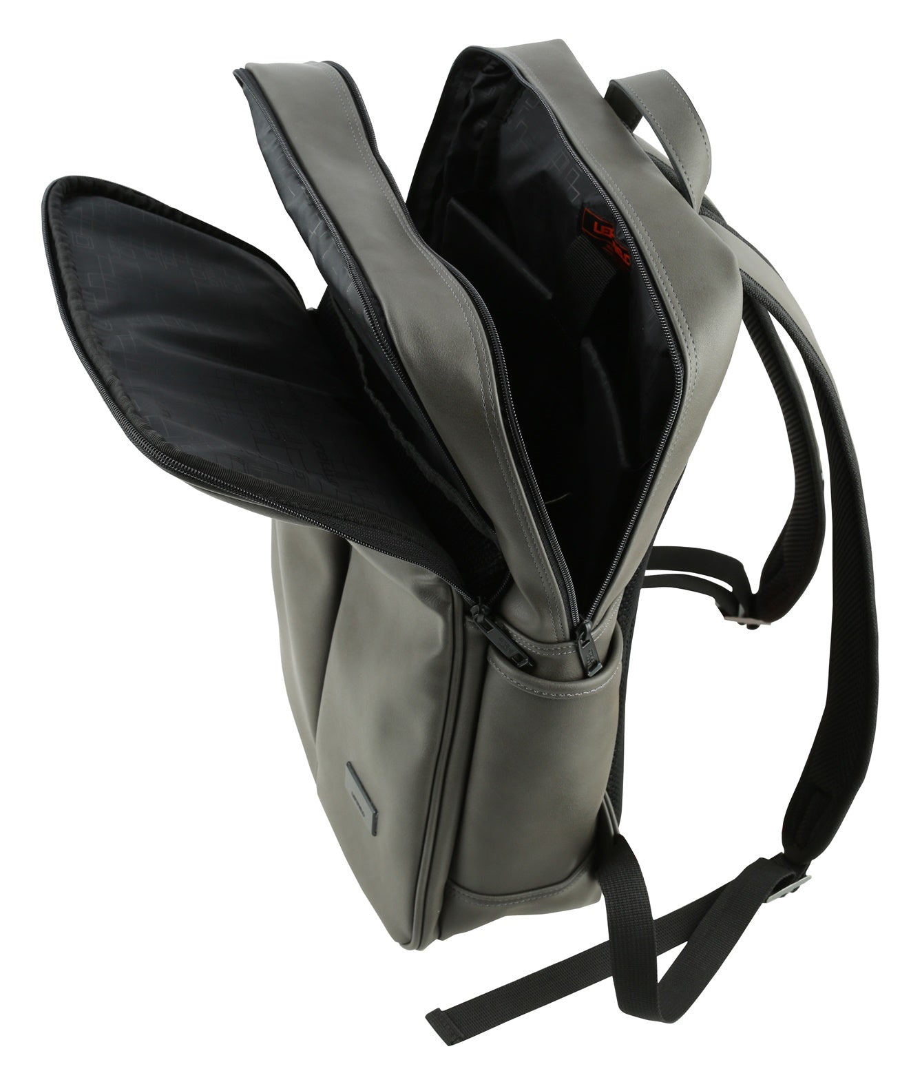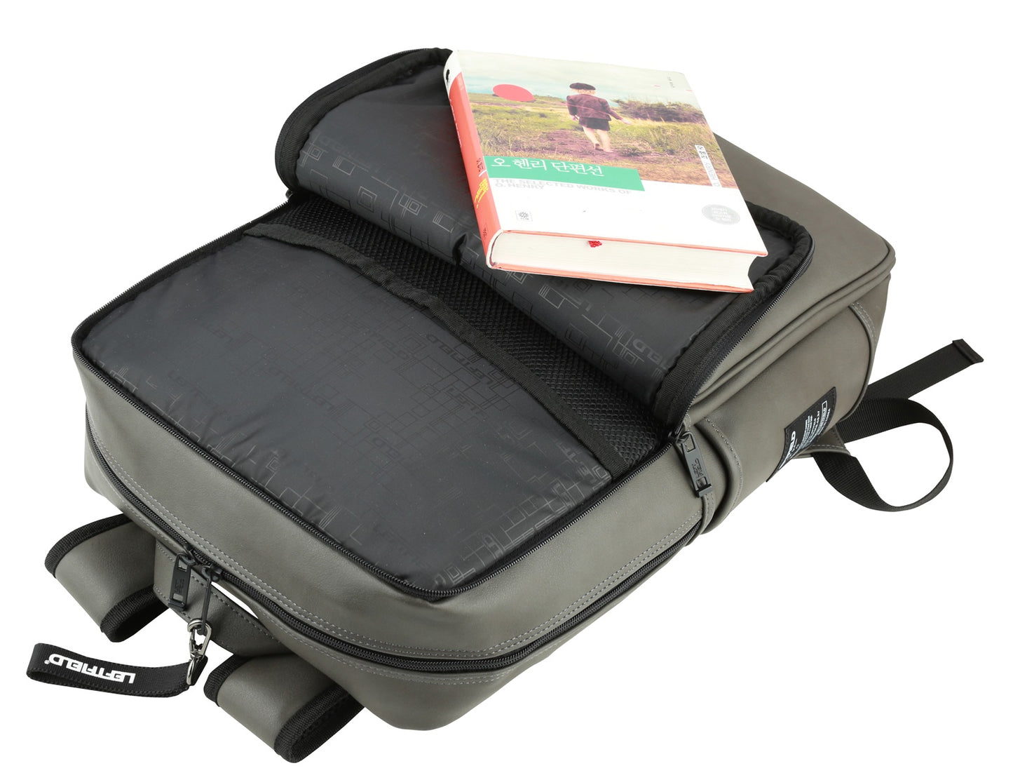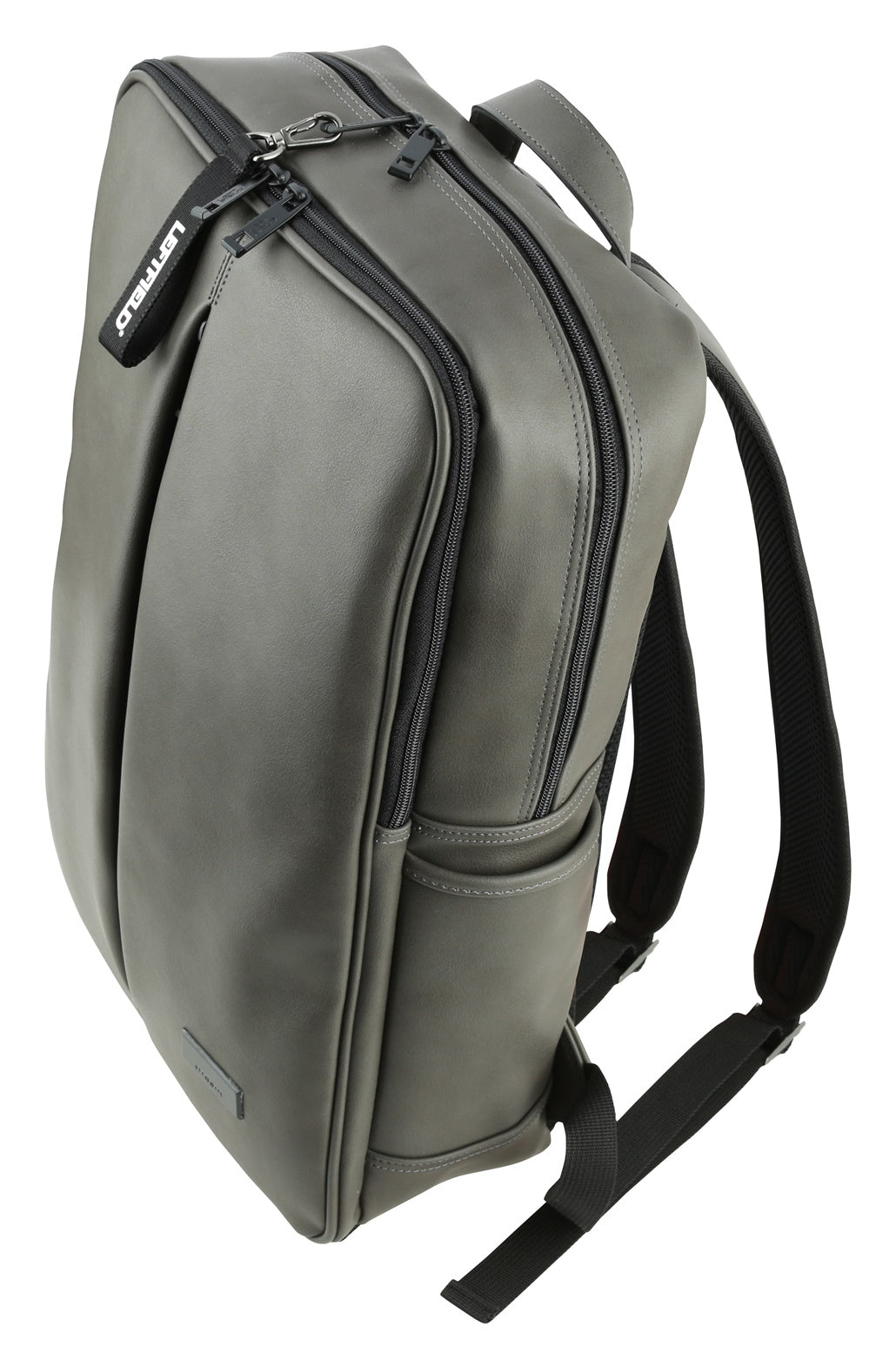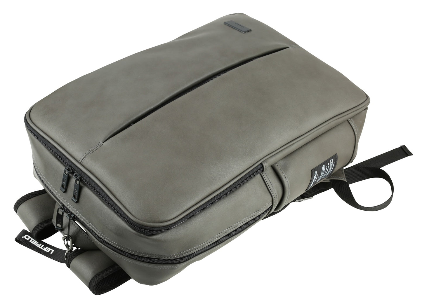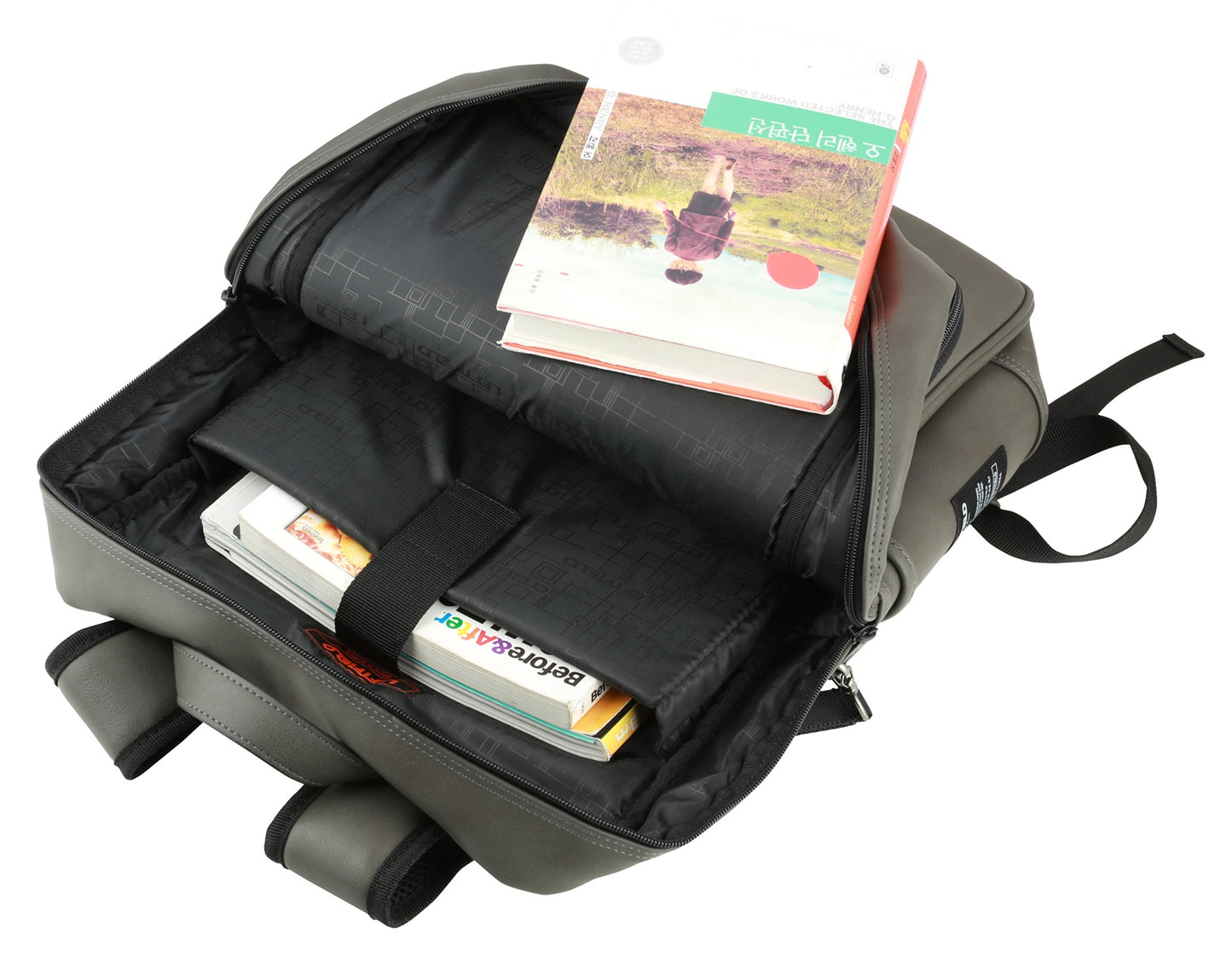 Gray Vertical Line Zipper Faux Leather Backpacks