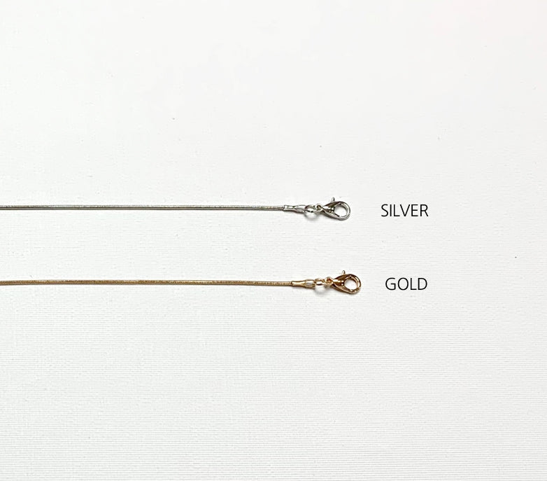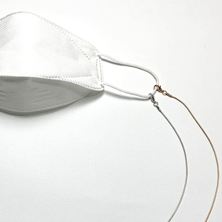 Handmade surgical steel plated mask necklace for sale. Use the lobster claw clasps to attach to the straps of your face mask. Thread necklace for face mask.