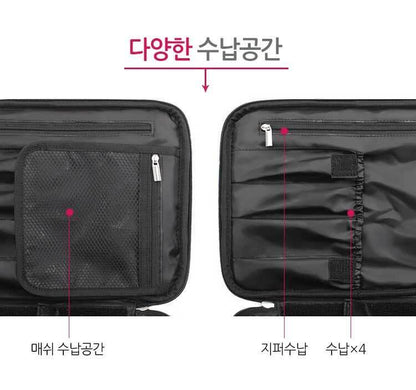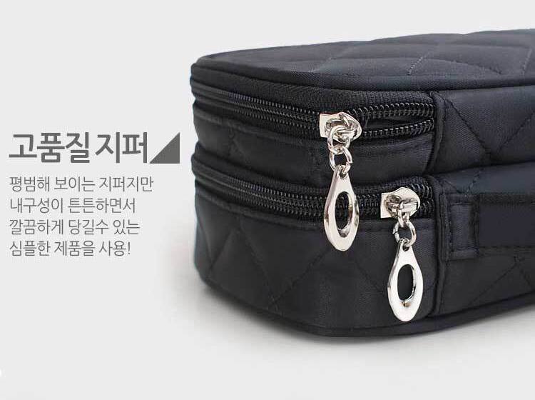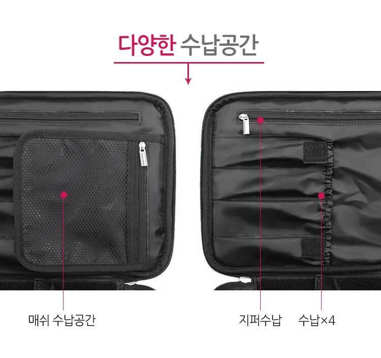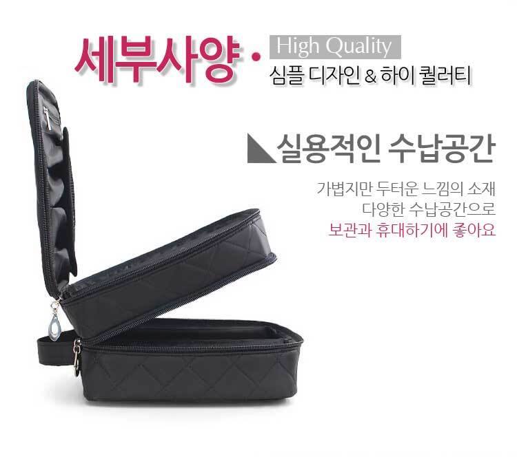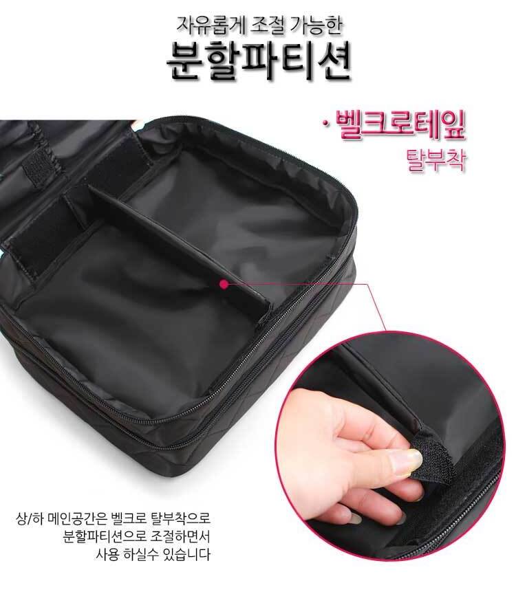 It's a good product to carry around in a normal handbag size or put in a neat suitcase. You can use the upper/lower main space by using Velcro detachable partings. It's a light but thick material, so it's a good product to store and carry in various storage spaces.
