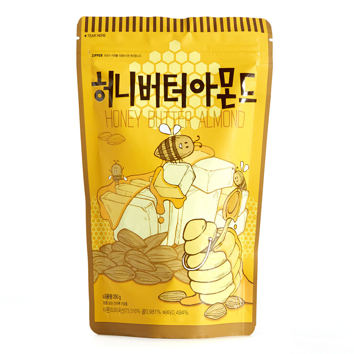 Once you eat unforgettable Honey Butter Flavor Almond Nuts What better than tossing almonds in honey and butter for a decadent snack? (As the obsession grows, all these honey butter products look uncannily alike in terms of design and packaging!) This is a pretty interesting change from the usual salted variety as there is honestly nothing better than sweet yet savoury almonds. Once you eat unforgettable Honey Butter Flavor Almond Nuts. You'll never forget this taste!!! Taste and nutrition at a time. Benefits of Almonds Even good unsaturated fatty acids and rich in vitamin E are good for healthy skin and a rich abundance of iron and calcium. Good nutritious snacks to children. Beer snack of good nutrition for adults. Capacity 250g [8.8oz] Ingredients peanuts, tree nuts, wheat, soy, salt and milk ingredients.