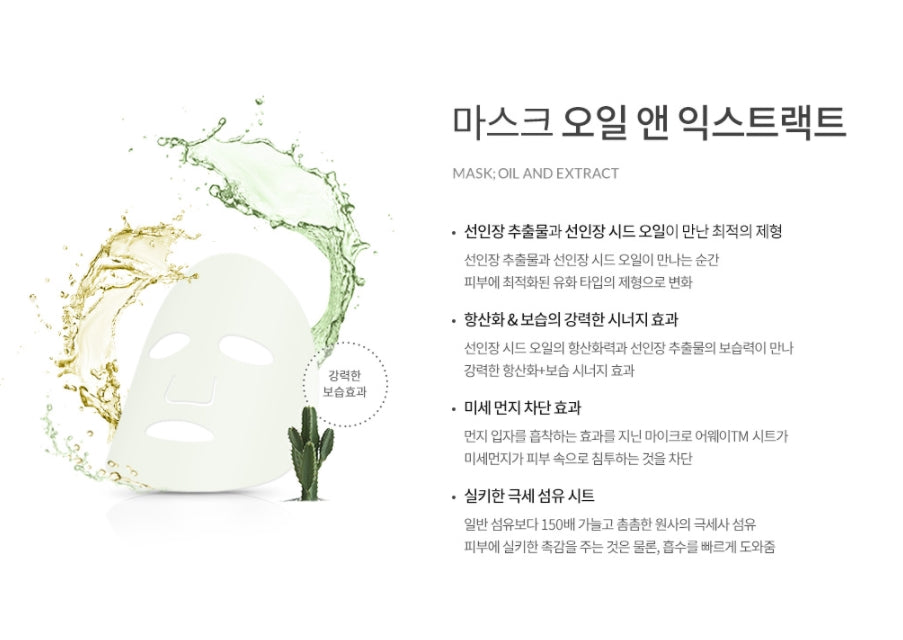 The moment the cactus extract and cactus seed oil meet, it changes to an emulsifying-type formulation optimized for the skin. Microfiber fiber of yarn that is 150 times thinner and finer than regular fibers provides a silky touch to the skin and helps absorption quickly.