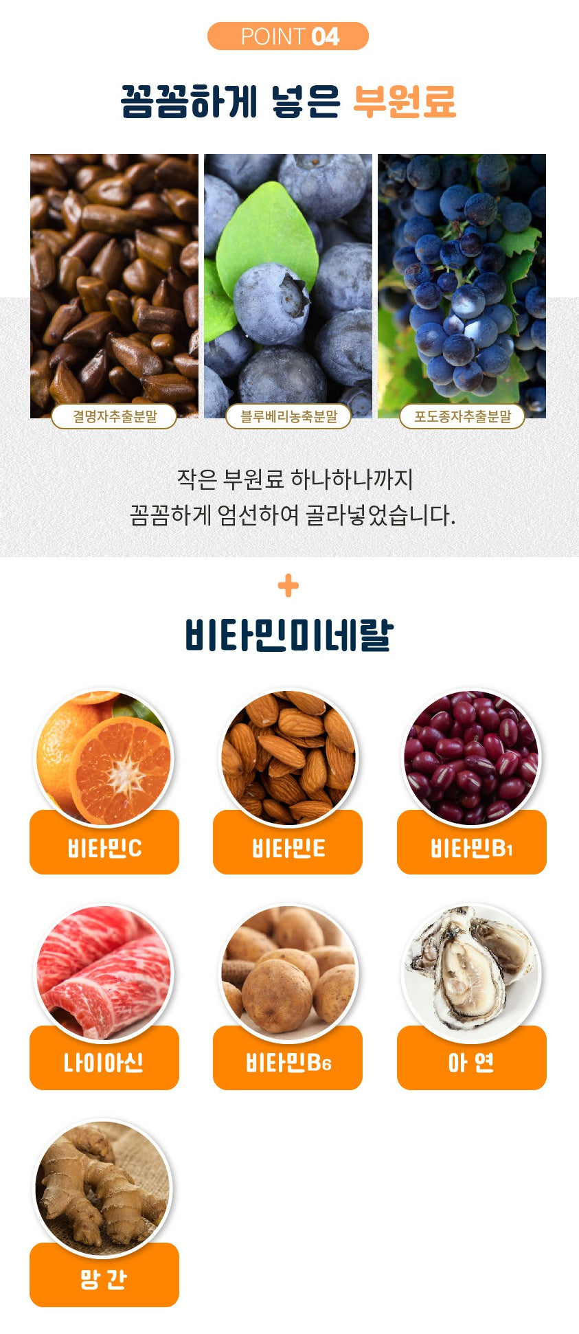 Ingredients: Vitamin A mixture powder (vitamin A acetate powder, maltodextrin, corn starch, gum arabic, vitamin E), crystalline cellulose, mixed lactose (lactose, dextrin), corn starch, vitamin C, silicon dioxide, hydroxypropylmethyl Cellulose, Grape Juice Powder, Magnesium Stearate, Vitamin E Mixture Powder (DL Q-Tocopheryl Acetate, Maltodextrin, Sodium Octenylsuccinate Starch, Silicon Dioxide), Zinc Oxide, Zinc Extract Powder, Blueberry Concentrate Powder, Nicotinamide, Manganese sulfate, amino acid mixture powder (L-glutamine, L-leucine, L-phenylalanine, L-lysine hydrochloride, L-valine, L-threonine, L-isoleucine, L-methionine, L-tryptophan), grape seed extract , vitamin B1 hydrochloride, vitamin B6 hydrochloride ,milk.