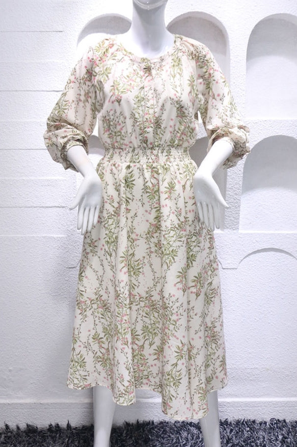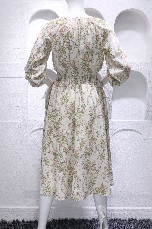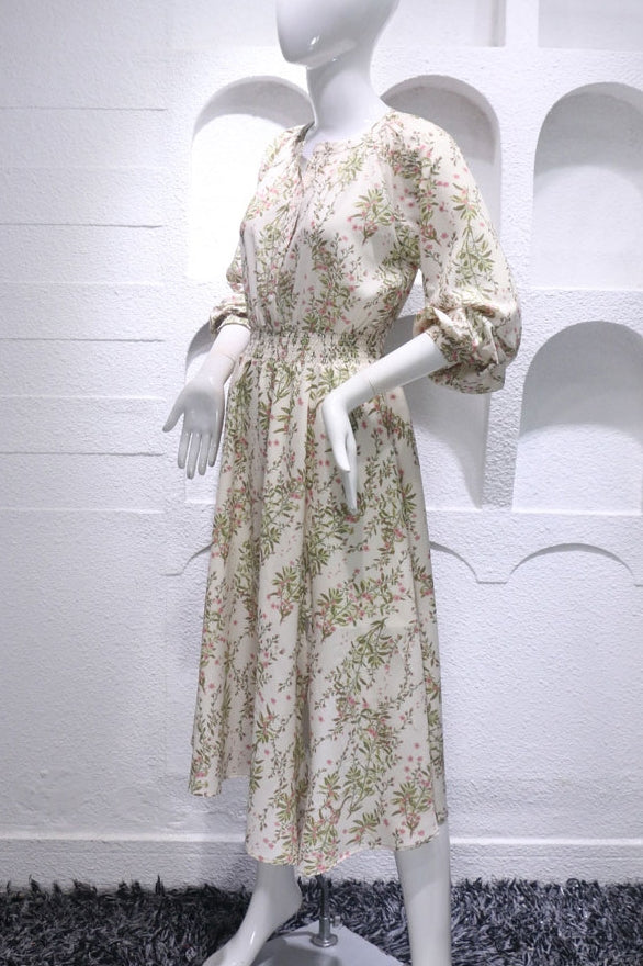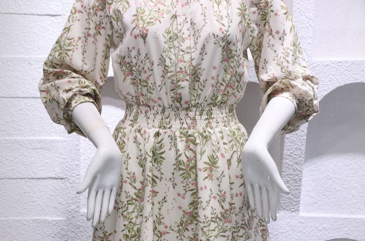 Kpop fashion dresses for women and girls. Floral pattern dresses, rounded neck and buttoned closure dresses. Wear for dating, party, wedding, dinner.
