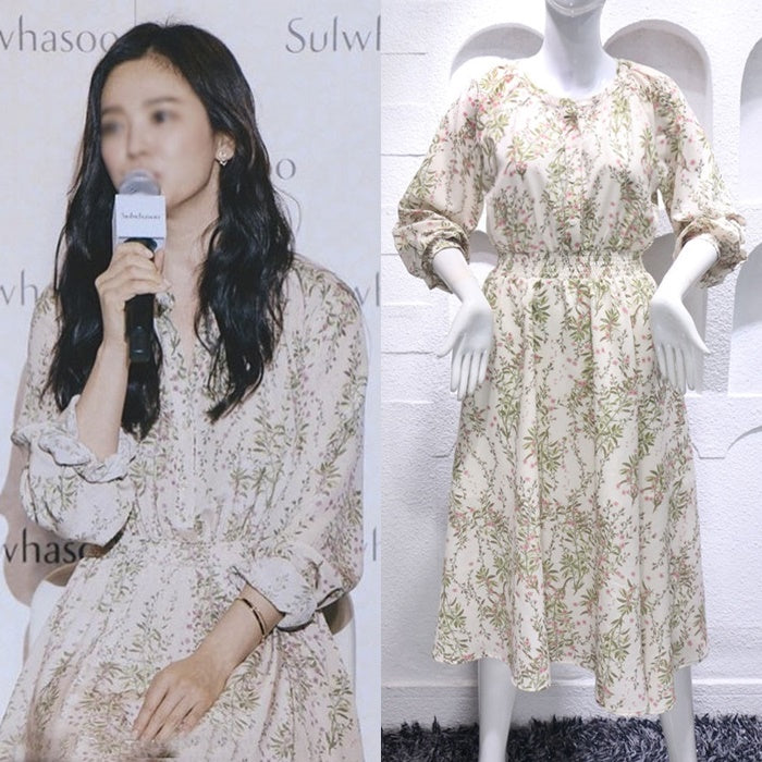 Ivory Song Hye Kyo Floral Dresses Korean Actress Womens Flower Pattern