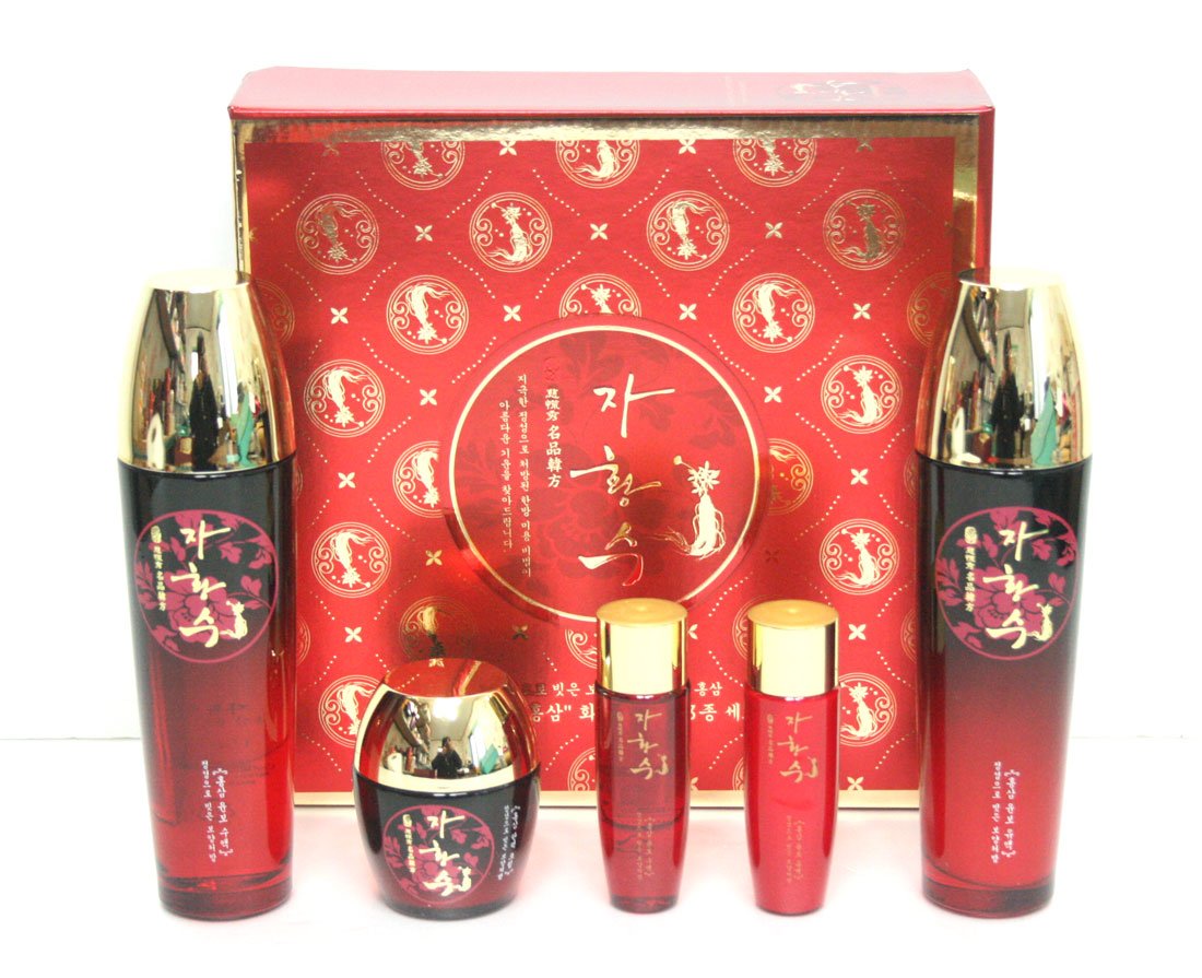 With extracts from Korean red ginseng extract the secret of beautiful skin youthful glow with herbal ingredients like ginseng combination Acanthopanax, Ganoderma, velvet deer based on the principle of yin and yang balance of east and elements based on the principle of territorial water, fire wood needles, the red ginseng cosmetics skin care jahwangsu you from deep inside the elimination of harmful toxins built deep in the skin and balances the skin foster care.