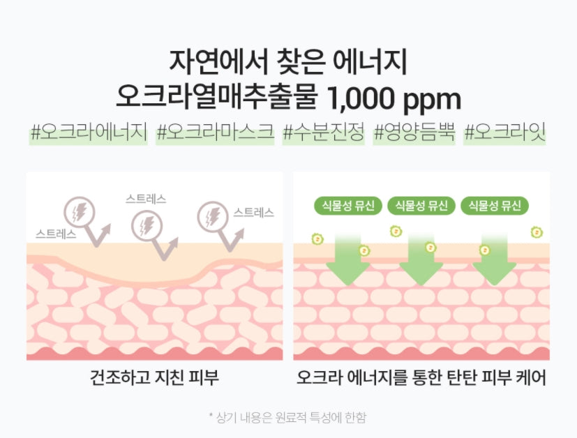 Okra Fruit Extract: Rich in vitamins and beta-carotene, okra extract forms a barrier that locks in moisture and keeps your skin firm. Gently nourishing.