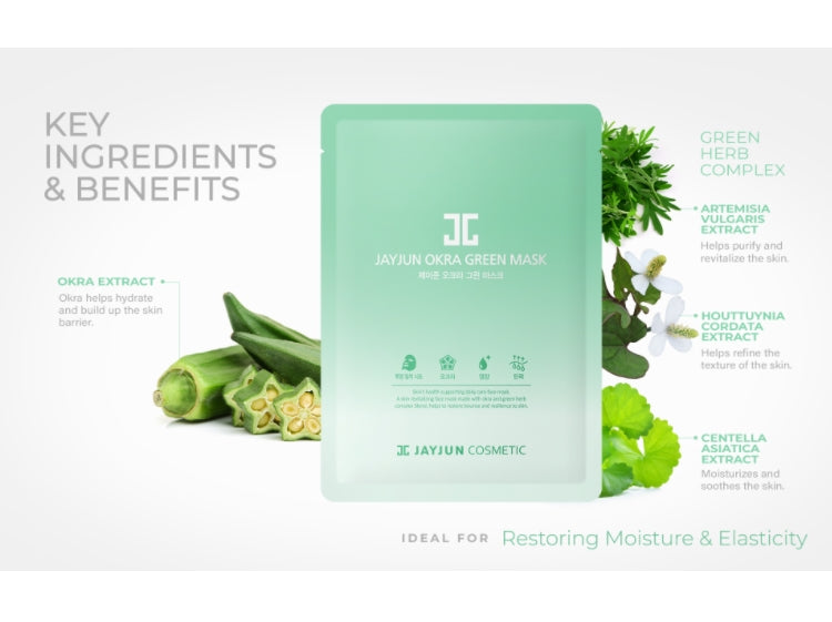 Jayjun Okra Greem Mask Skin Barrier Nourishes Health Face Mask Hydrate