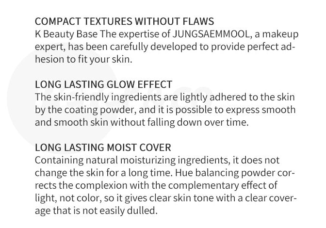 There is no boundary of work for the K-stars these days. They have to look their best not only on the stage or photo studio but also outside of working place such as airport, restaurant or private parties because of paparazzi. This innovative cushion foundation is perfect prescription for celebrities to stay in the effortless and seamless makeup for 24/7!