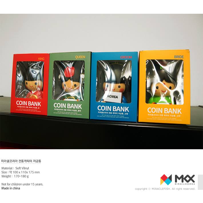 Lovely Korean traditional characters are made of Coinbank products, and complete simple savings and nice interior design.