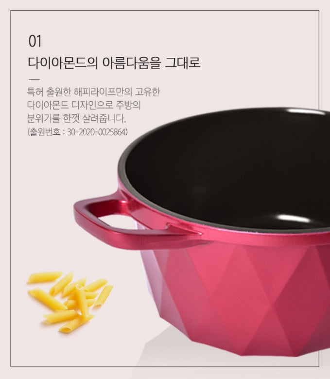 Delicate and sophisticated design and grip, the IH diamond ceramic pot harmoniously fits into any kitchen.
