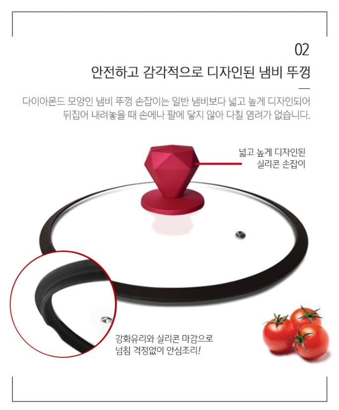 The diamond-shaped pot lid handle is wider and higher than a regular pot, so it won't touch your hand or arm when you put it down, so you don't get hurt.