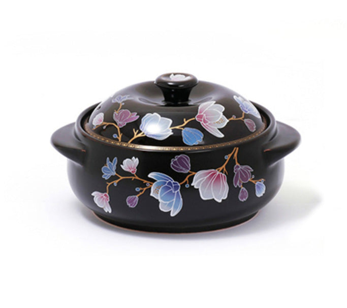 KUC Magnolia Flower Ceramic Geranium Heatproof Ttukbaegi Stew Pot Kitchen Food Cooking Utensil Gas Korea Gifts Oven Floral Black