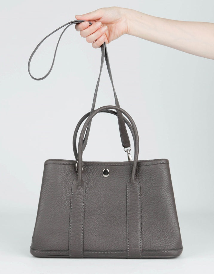 Luxury career handbags with detachable crossbody strap. Snap button closure, square shaped, available use as shoulder bags, totes, crossbody bags. high quality elegant handbags made in Korea.
