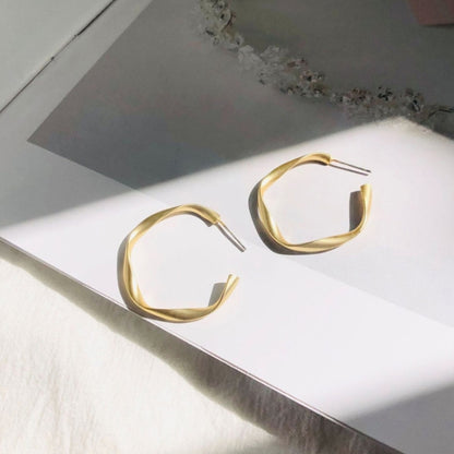 Women's earrings. It's a silver 925 material that has little allergic reaction and goes well with a feminine look. Mat Gold Ring Earrings Gift Korean jewelry Accessories