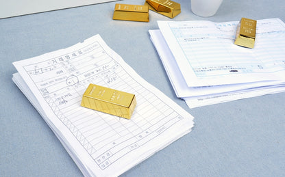 It is a mini gold painted doorstop also it is a paperweight, and it is can be used as a magnetic holder, memo pad holder, it looks like a real gold bar, gold bullion, it is a great business gift , also great for collectors, invest lovers.