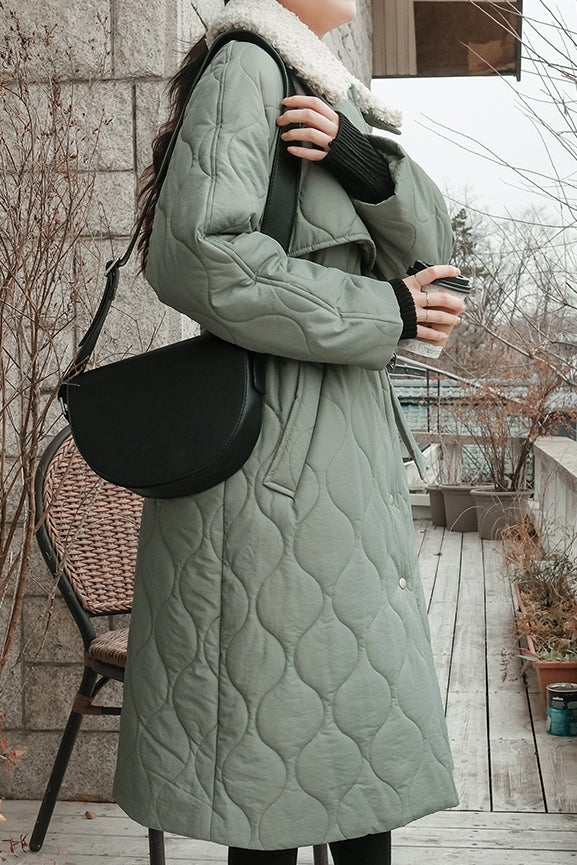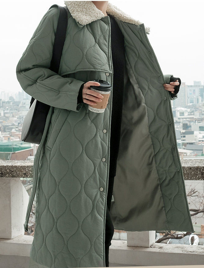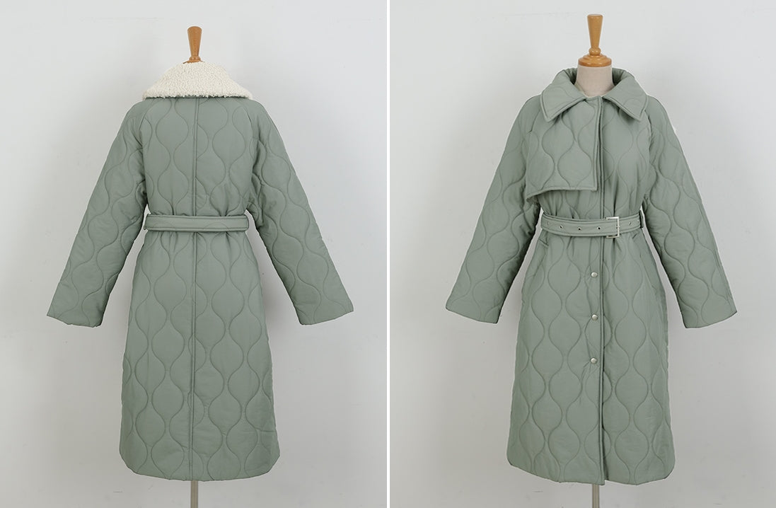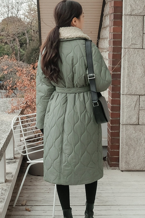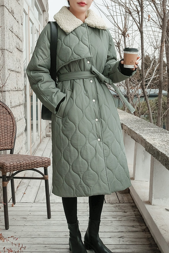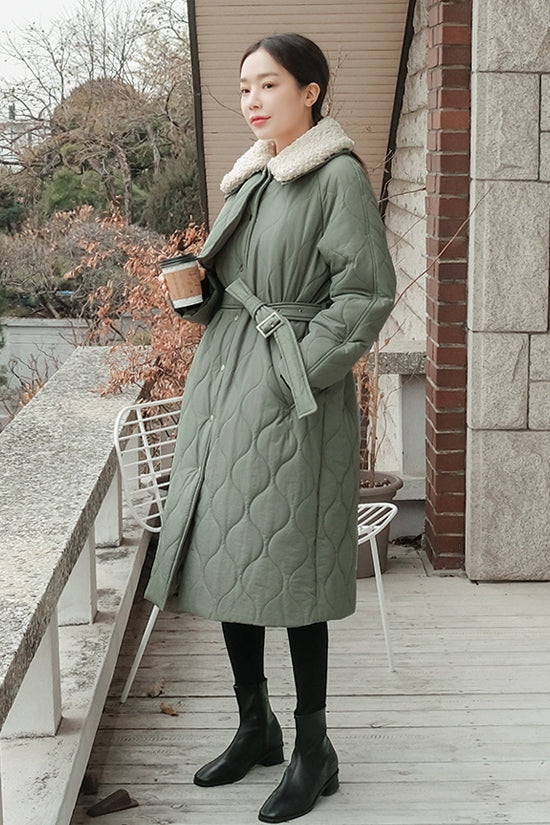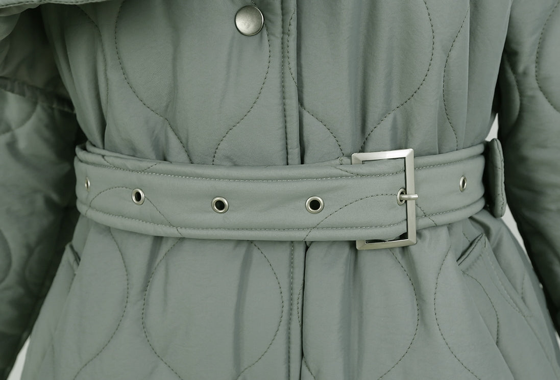 Mint Winter Puffers Long Coats Womens Waistbelt Outerwear quilted