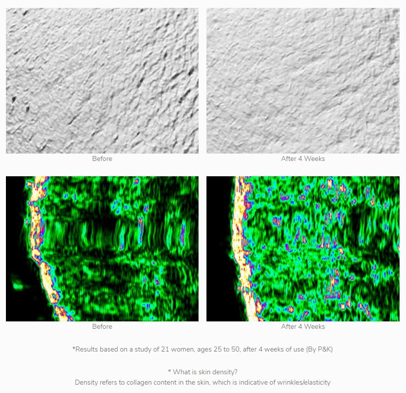 Completed clinical test (Test to Raise skin moisture from deep inside of skin (Moisturizing Firming, Density imporvement), Smoothing, Removing dead cell, improving skin tone)