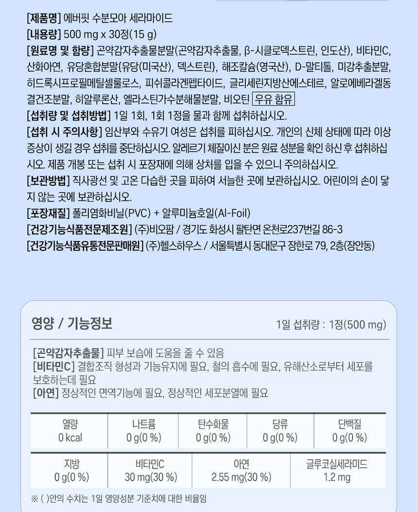 This product uses safe raw materials extracted from vegetable materials. It is an inner beauty health functional food that people need to worry about dry and dry skin as the cold wind blows as they get older.